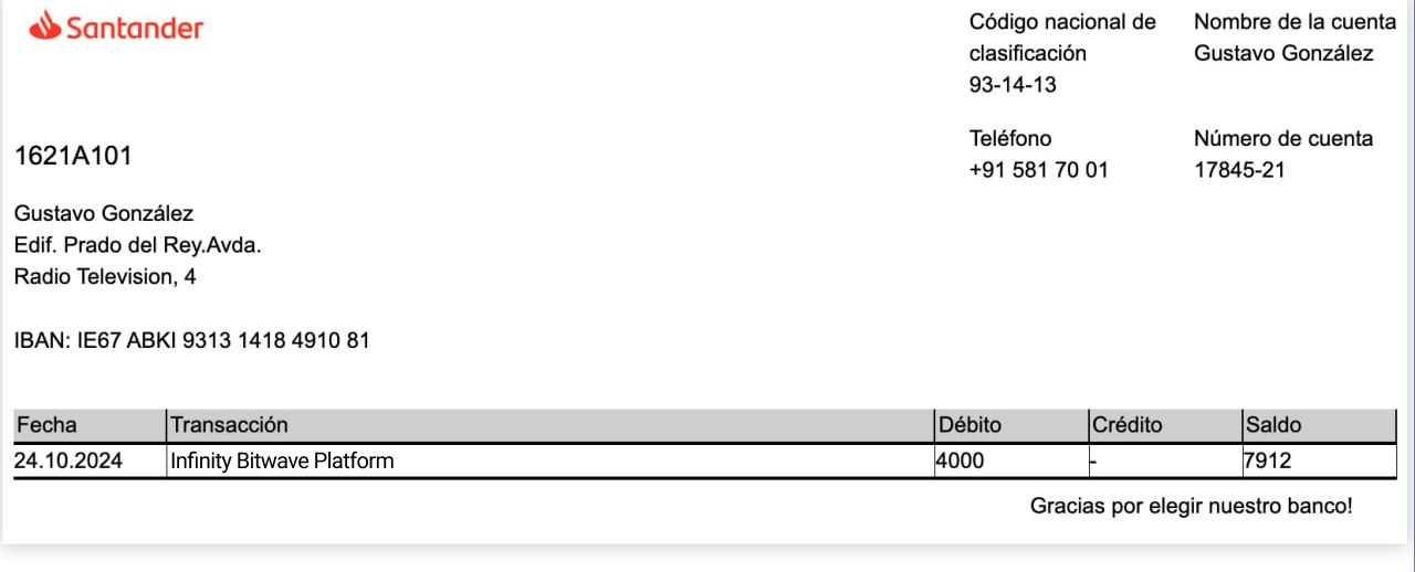 Machos es mi primera semana en la plataforma. ¡Recibí una invitación para el lanzamiento del sistema! Hasta ahora funciona muy bien para mí. En los primeros 5 días he ganado €3,200 y sigo creciendo lentamente :)